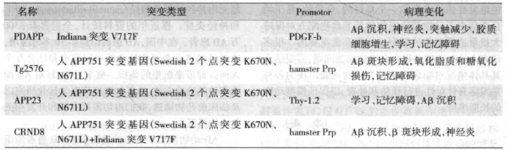 表11-1 APP轉(zhuǎn)基因小鼠阿爾茨海默病模型