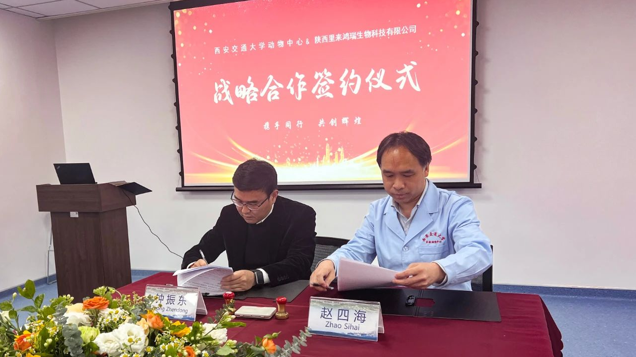 2024年4月11日,西安交通大學(xué)實驗動物中心與陜西里來鴻瑞生物科技有限公司在西安交通大學(xué)實驗動物中心會議室共同舉行了戰(zhàn)略合作簽約儀式。此次合作標志著雙方在生物醫(yī)藥領(lǐng)域?qū)⒄归_深入的科研合作與技術(shù)交流,共同推動實驗動物技術(shù)的發(fā)展及其在基礎(chǔ)研究與醫(yī)藥研發(fā)中的應(yīng)用。
