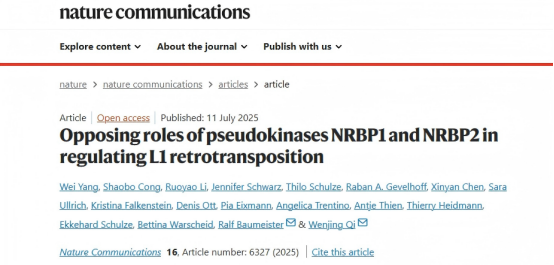 本研究闡明關(guān)鍵機(jī)制:LINE1會(huì)招募細(xì)胞內(nèi)的假激酶NRBP1。假激酶是指結(jié)構(gòu)類似激酶但缺乏催化活性的蛋白質(zhì)。鑒于LINE1過(guò)度復(fù)制對(duì)細(xì)胞存在潛在風(fēng)險(xiǎn),細(xì)胞通過(guò)進(jìn)化發(fā)展出反制策略:其旁系同源蛋白NRBP2能夠與NRBP1形成異源二聚體,進(jìn)而靶向NRBP1,使其被細(xì)胞的降解系統(tǒng)(如蛋白酶體)識(shí)別并清除。