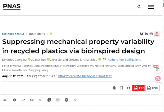 近日, Georgia 理工學院研究團隊借鑒自然界堅固結(jié)構(gòu)的設計原理,開發(fā)出一種創(chuàng)新工藝,顯著抑制了再生塑料固有的機械性能波動問題。航空航天工程助理教授Christos Athanasiou領導了這項研究,相關成果發(fā)表在《PNAS》期刊上。