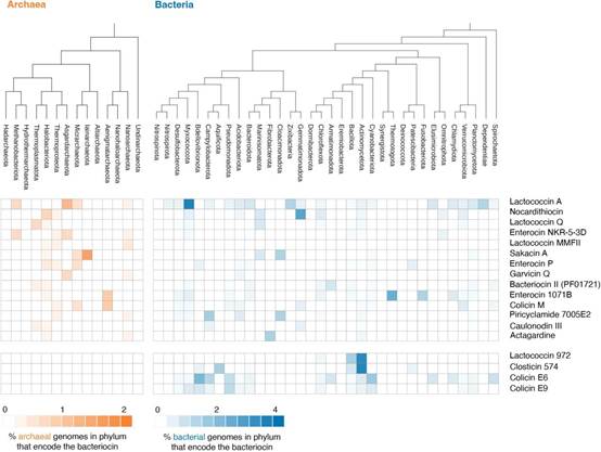 圖片信息:肽聚糖水解酶(細菌素/古細菌素同源物)在細菌和古細菌中的分布