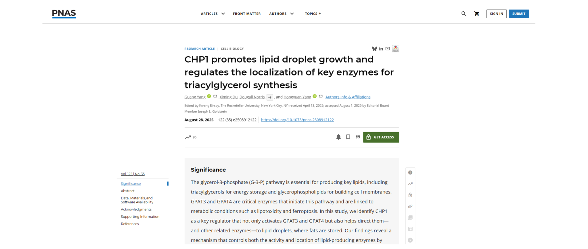 細(xì)胞脂肪儲(chǔ)存“調(diào)度員”CHP1蛋白現(xiàn)身,開辟脂代謝研究新方向