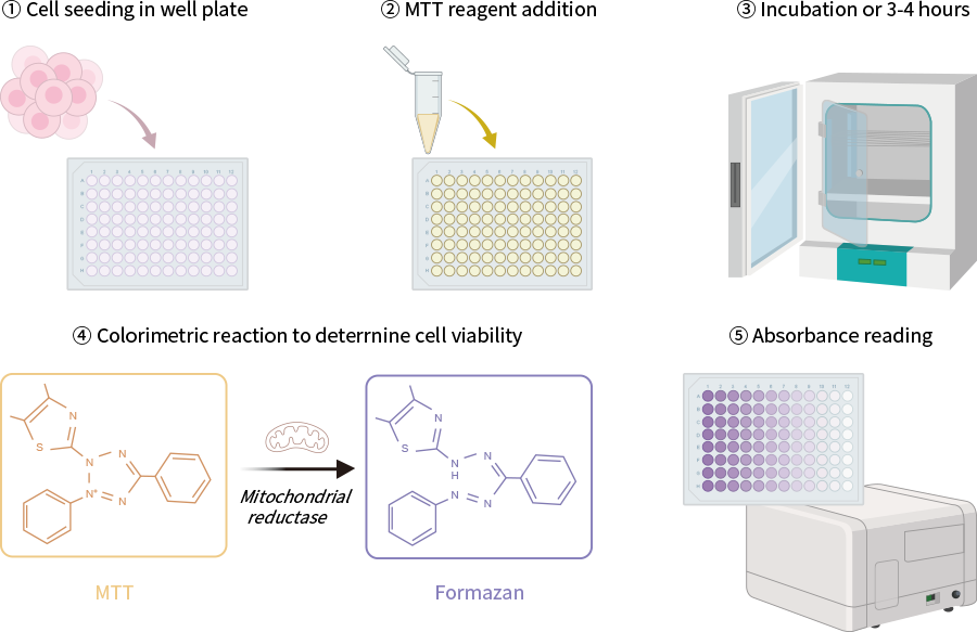 在特定溶劑存在的情況下,該產(chǎn)物被完全溶解,然后通過(guò)酶標(biāo)儀在特定波長(zhǎng)(如570nm)條件下根據(jù)吸光度來(lái)反映細(xì)胞增殖/毒性情況。