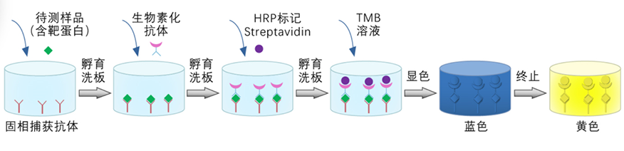 ELISA技術(shù)是將抗原抗體反應的特異性與酶的高效催化作用有機結(jié)合的一種方法。它以酶作為標記物,與抗體或抗原聯(lián)結(jié),與相應的抗原或抗體作用后,通過底物的顏色反應作抗原抗體的定性和定量。